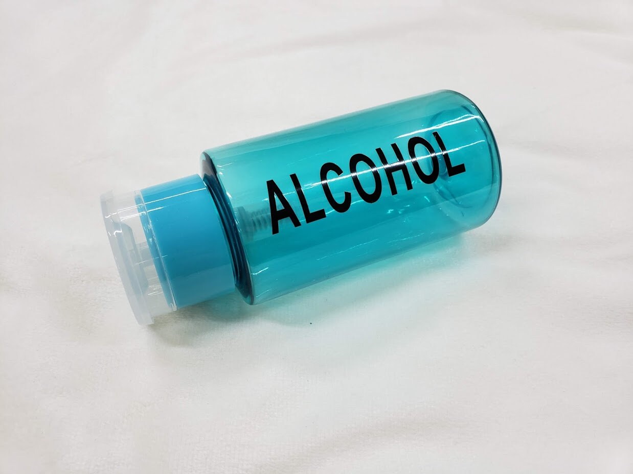 Push Down Pump Dispenser Bottle with Flip Top Cap with Alcohol Label