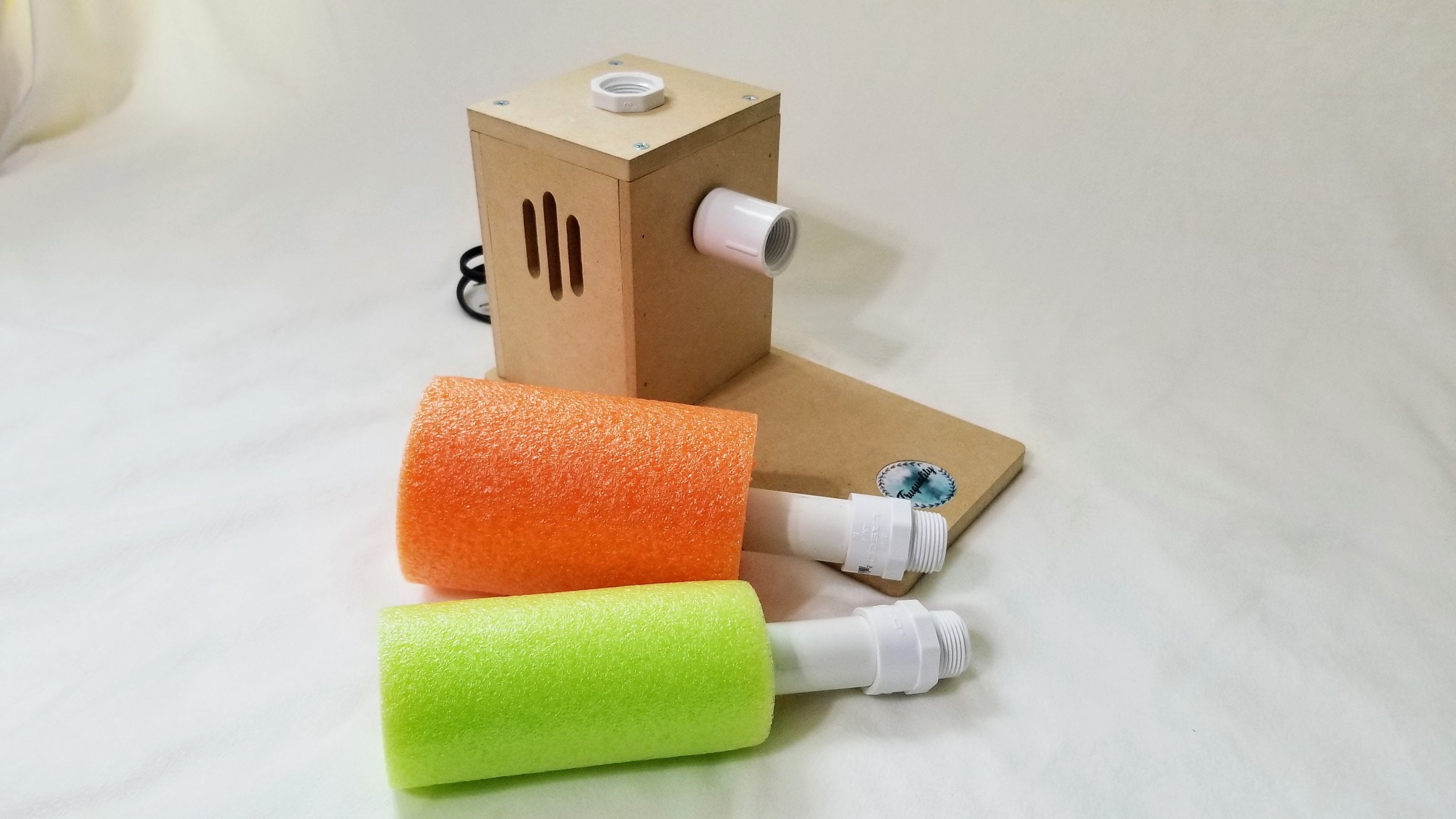 Single Cup Turner - NEW DESIGN - Small compact design, 2.5-3 rpm motor, 3 ft power cord, power switch, one cup drying rack. Motor can be replaced when the time comes. Will come fully assembled and ready to use. Comes with two detachable noodle pvc arms. You may need to add different size footballs, pool noodles, or floral foam based on your personal preference and needs. This cup turner can be used with a variety of cup sizes. Made with 3/4” pvc.